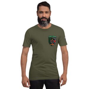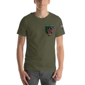 Zombie Apocalypse Survivor – Veteran variant – Bella Canva Unisex t-shirt – Designed by Phil Forget.
