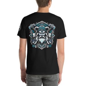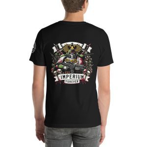 • Double-needle stitched collar, shoulders, armholes, cuffs, and hem